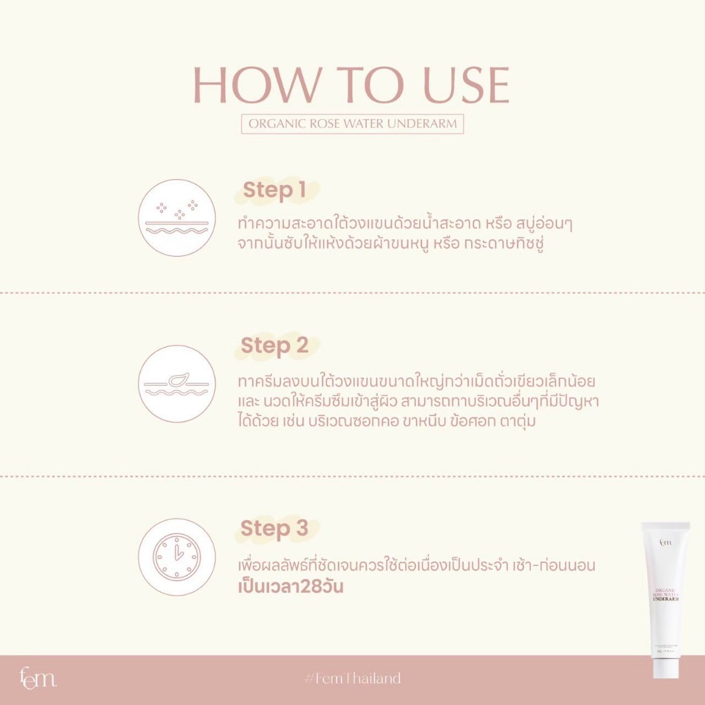 [ ของแท้/ร้านบริษัท ในไลฟ์ลด 100 ] FEM ORGANIC ROSE WATER UNDERARM ครีมทารักแร้เฟ็ม ลดตุ่มหนังไก่ รับแร้เนียน กระจ่างใส