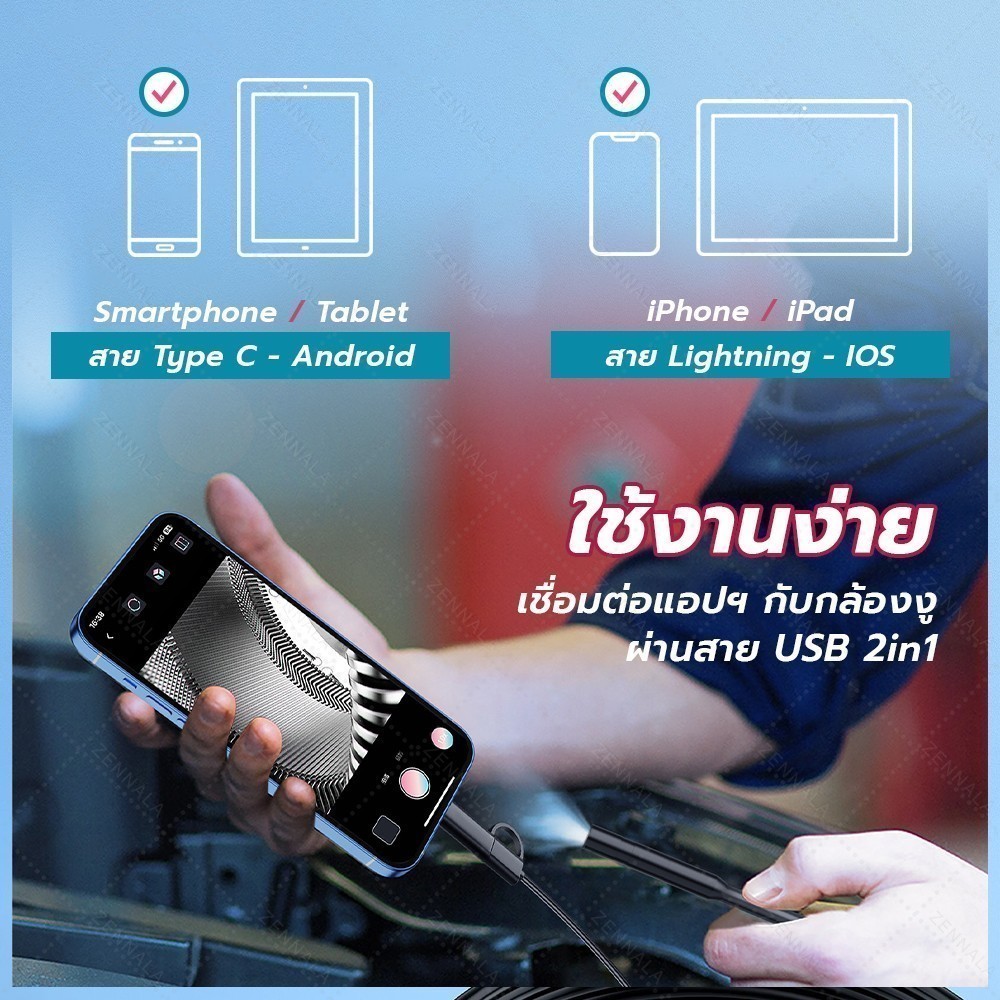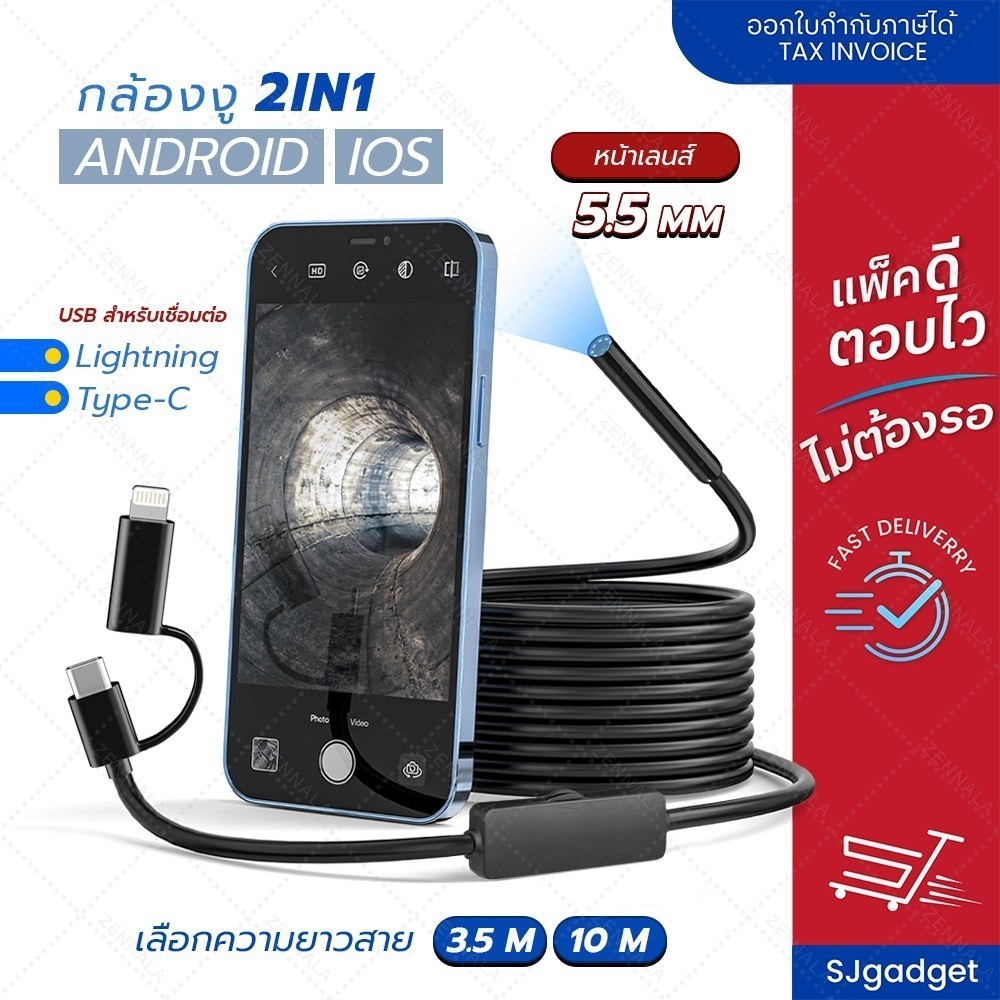 พร้อมส่ง 📦 กล้องงู Full HD 2IN1 TypeC-Lightning 5.5mm สายยาว 3.5m / 5m สายอ่อน สายแข็ง Androids และ iOS ใช้ได้