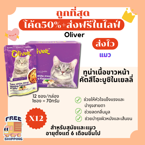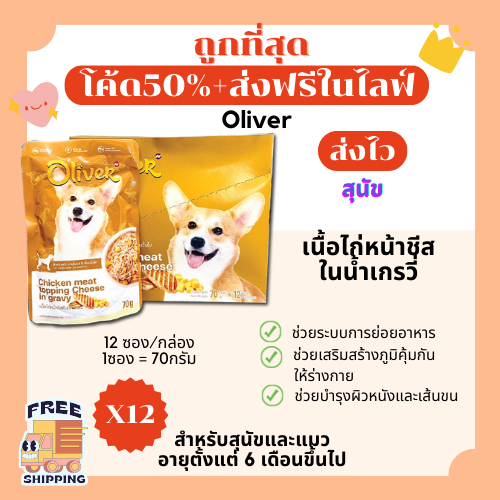 (ส่งฟรี+โค้ดไลฟ์40%)Oliver(โอลิเวอร์) อาหารสุนัขและแมวเปียก (ยกโหล)12ซอง ครบ6รสชาติ ส่งไว️ อายุตั้งแต่ 6 เดือนขึ้นไป