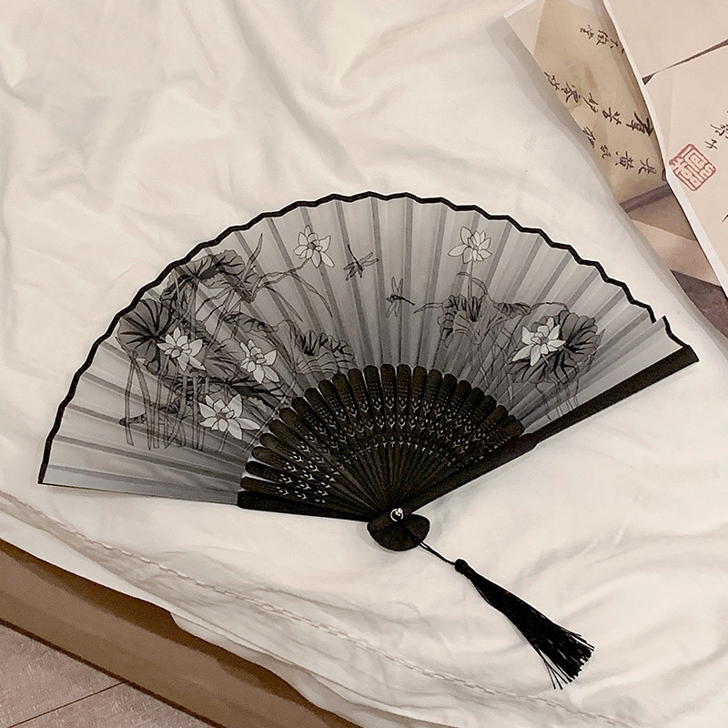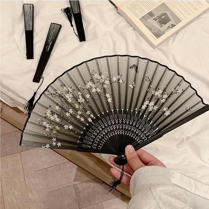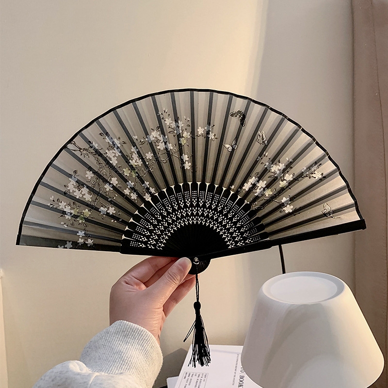 สไตล์จีน ด้ามจิ้ว พัดลมโบราณ พู่ห้อย 8 นิ้ว พัดลมด้ามไม้ไผ่ พัดลมมือถือแบบพับได้ ง่ายต่อการพกพา หลากหลายสไตล์ H9322
