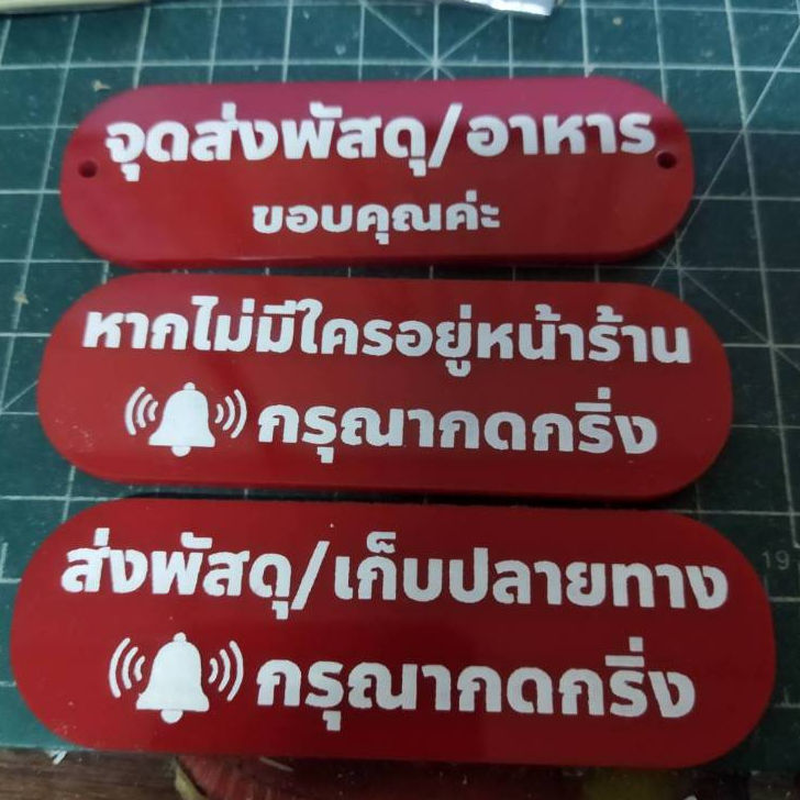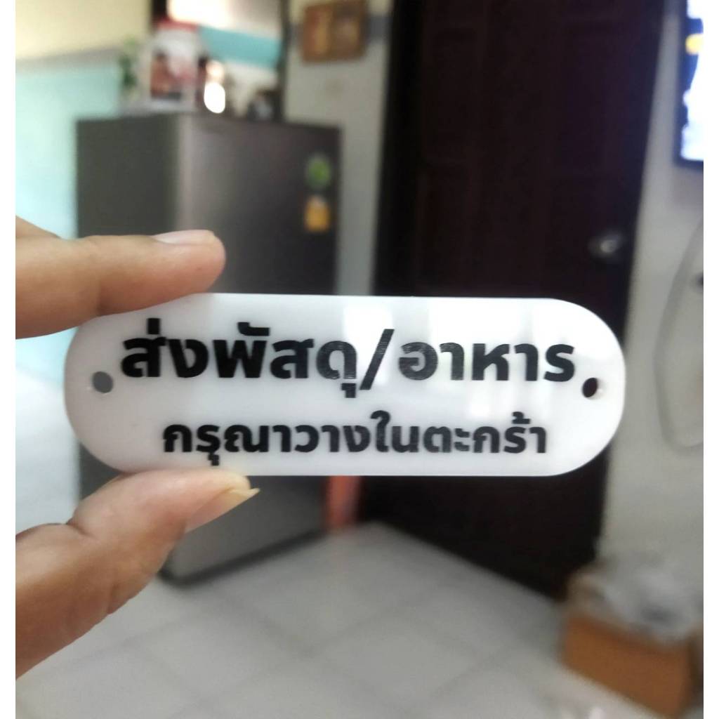 ป้ายส่งพัสดุ/อาหาร กรุณาวางในตะกร้า 3x10cm ป้ายอะคริลิค+กาว3M สไตล์ มินิมอล งานสลักเลเซอร์ทำสี ทนแดด ทนฝน