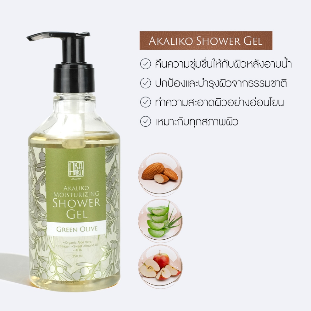 [แถม ออยล์10mlx6กลิ่น] AKALIKO Set Body Oil + Shower Gel 250 ml อะกาลิโก เซ็ตบอดี้ออยล์และเจลอาบน้ำ 250 ml