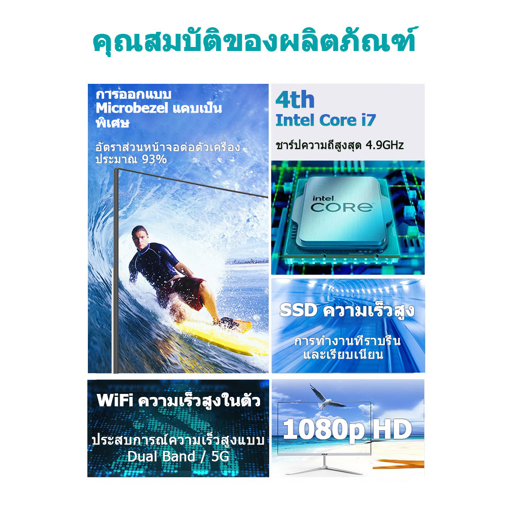 2026 ยี่ห้อใหม่ 24 เกม All In One pc คอมพิวเตอร์เดสก์ท็อป Intel Core i7 RAM16GB + 512GBSSD เกม Win11 ระบบ