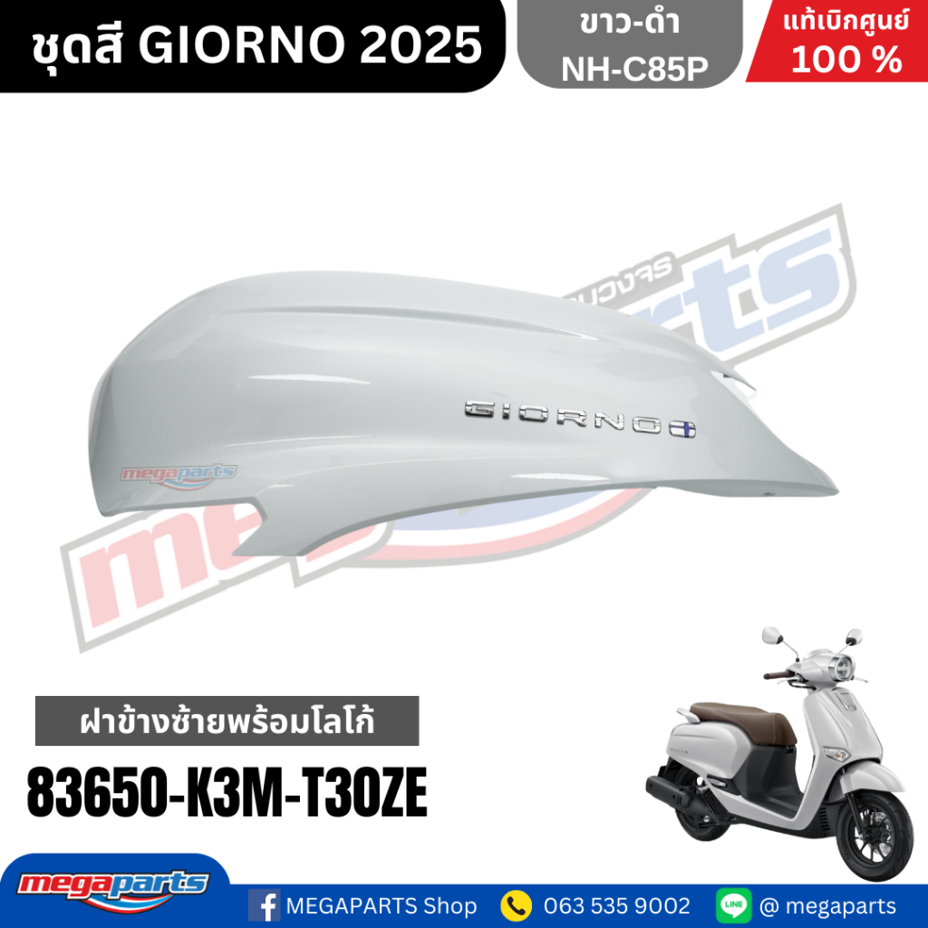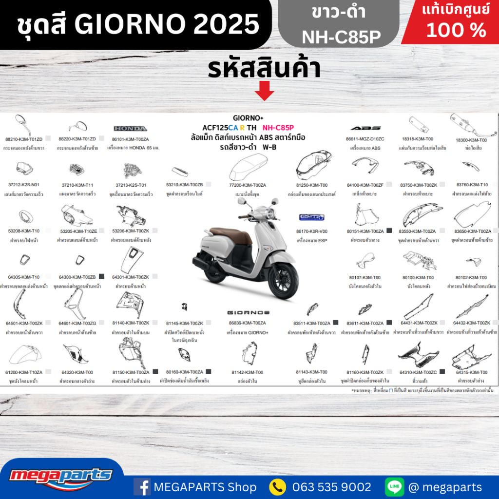 ชุดสีทั้งคัน HONDA GIORNO จีออโน่ ปี 2025 สีขาว-ดำ NH-C85P สตาร์ตมือ ล้อแม็ก ดิสก์เบรกหน้า ABS แท้เบิกศูนย์ฮอนด้า 100% (