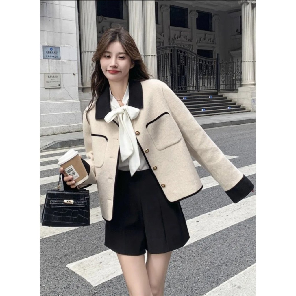 เสื้อคลุมขนสัตว์แบบปกคลุมด้วยน้ำหอมขนาดเล็กของผู้หญิงสไตล์สั้นสไตล์เกาหลีระดับสูงจัดส่งในกรุงเทพฯ
