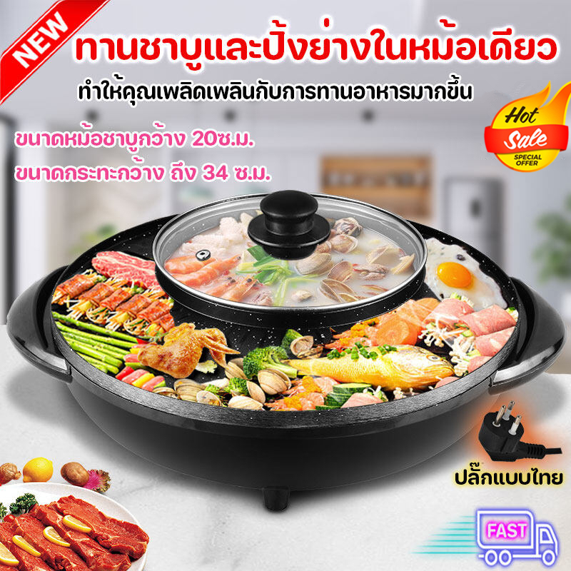 (พร้อมส่ง) หม้อชาบู ปิ้งย่างพร้อมหม้อต้ม 2in1 เตาปิ้งย่างและหม้อสุกี้ สามารถทานพร้อมกันได้ทั้งปิ้งย่างและชาบู หม้อ