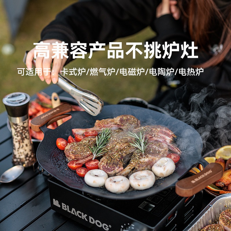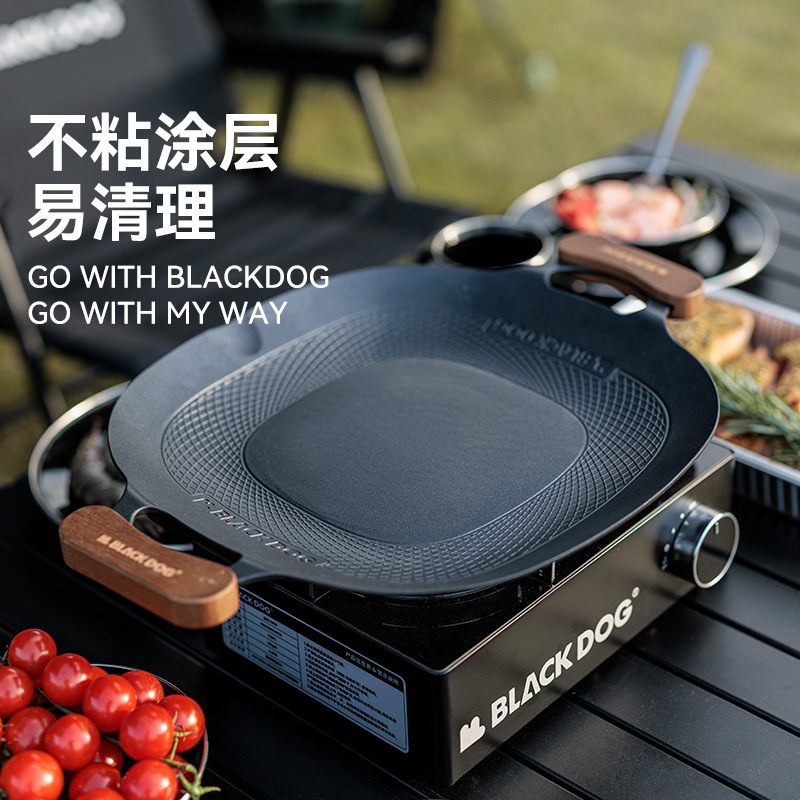 BLACK DOG กระทะย่างกลางแจ้ง ร้อนเร็ว เคลือบสารกันติดทำความสะอาดง่าย ใช้กับเตาแม่เหล็กไฟฟ้าได้
