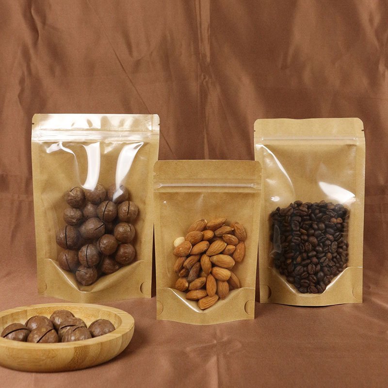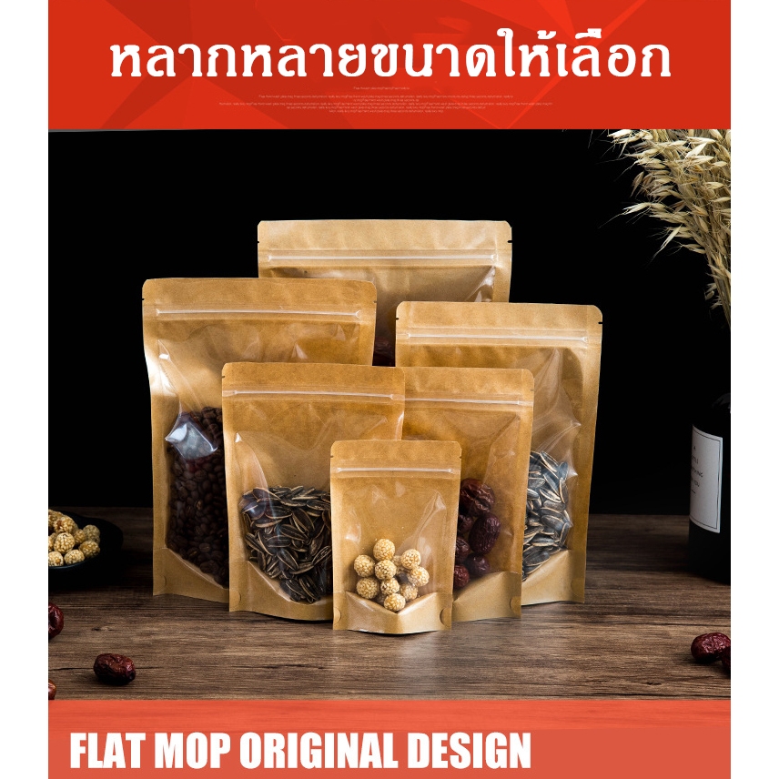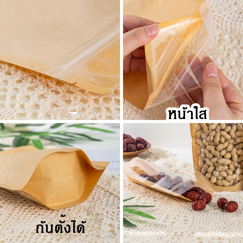 [กันน้ำ] ถุงกระดาษคราฟท์ สีน้ำตาล เคลือบกันน้ำ ถุงคราฟท์ซิป ก้นตั้งได้ หน้าใสหลังคราฟท์ รุ่นหนา
