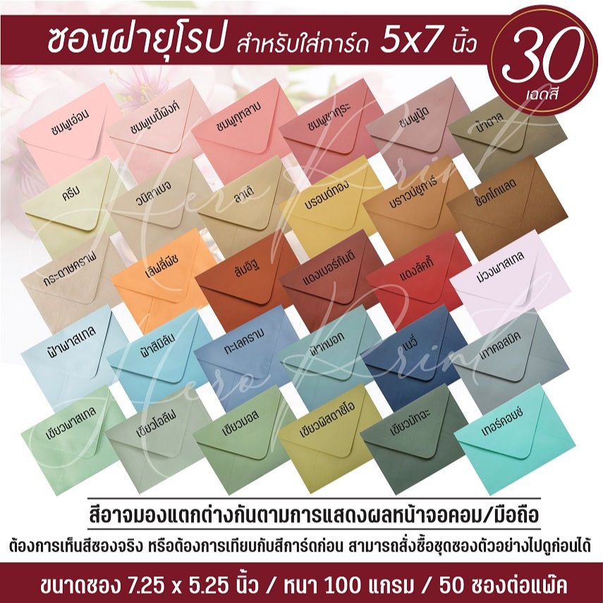 ซองฝายุโรป ซองใส่การ์ด ขนาด 5x7 นิ้ว หนา 100 แกรม (50 ซอง/แพ๊ค) ใช้กับการ์ดงานแต่ง การ์ดงานบวช หรือการ์ดพิธีต่างๆ