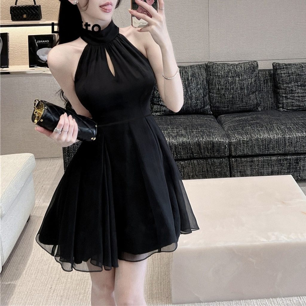 Lovito ชุดเดรสหรูหราชุดเดรสผูกหลังสองชั้นธรรมดาสําหรับผู้หญิง L80ED448