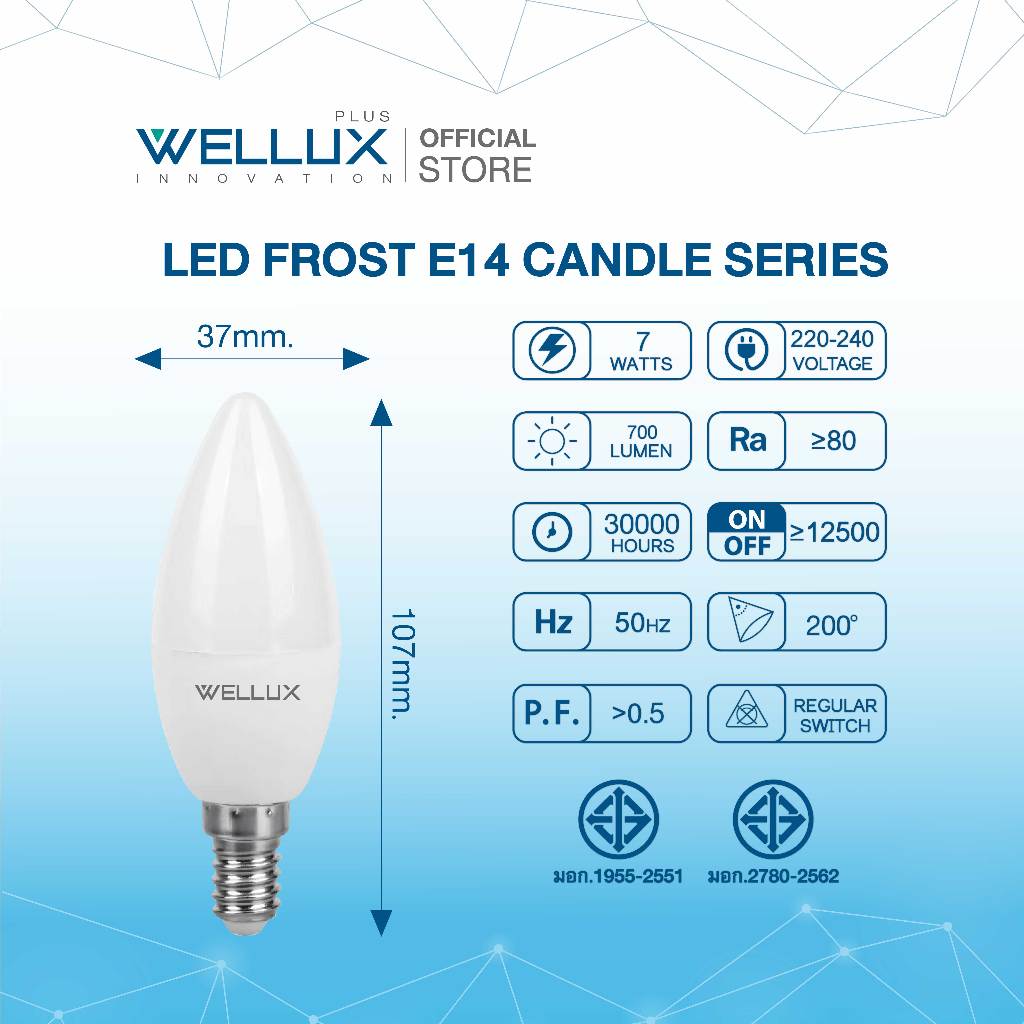 WELLUX หลอดไฟจำปา LED 7W ขั้วE14 แสงขาว แสงวอร์ม CANDLE SERIES