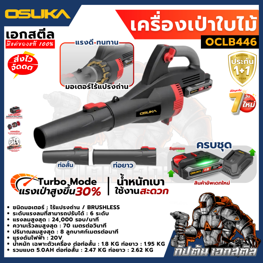 (ถูกสุด) OSUKA เครื่องเป่าใบไม้ ไร้สาย OCLB446-E1 446N เครื่องเป่าลม รับประกัน 1+1 ปี