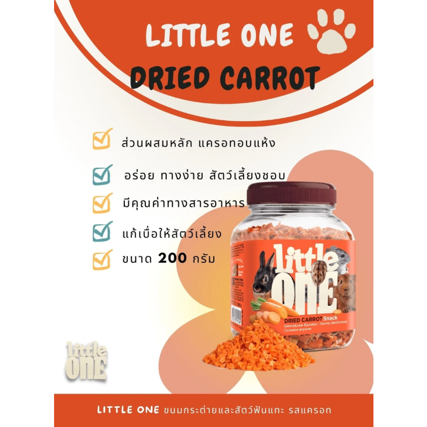 LITTLE ONE Snack Dried Carrot ขนมกระต่าย แกสบี้ และสัตว์ฟันแทะทุกชนิด รสแครอท 200g