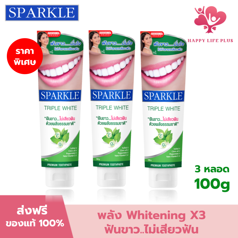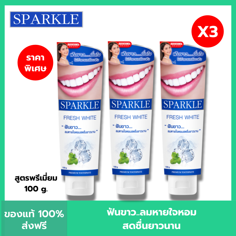 (โค้ดลด30% ในVDO!!) (3 หลอด) ยาสีฟัน สปาร์คเคิล SPARKLE TOOTHPASTE สูตร LEMON SODA (100 กรัม)/FRESH WHITE (100 กรัม)