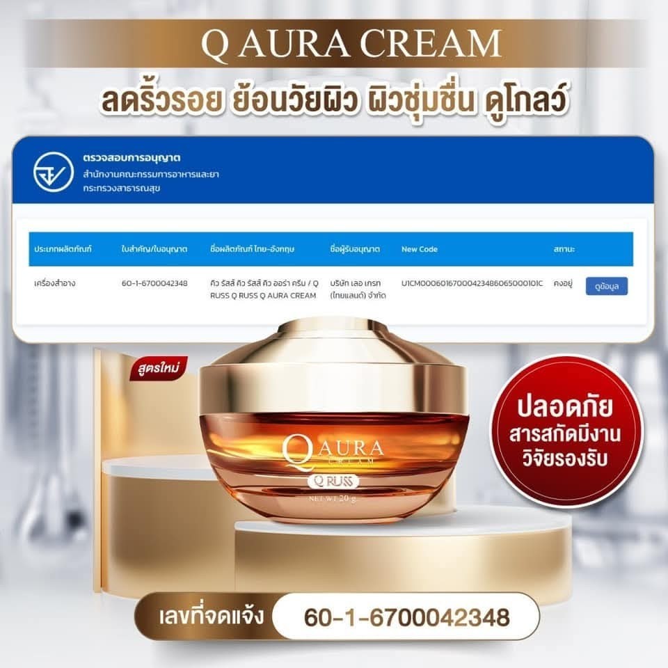 สูตรใหม่ 2026 - ครีมคิว By เซรั่มคิว Q Russ Aura Cream บำรุงผิว บางเบา ลดเลือนฝ้า กระ จุดด่างดำ รอยสิว