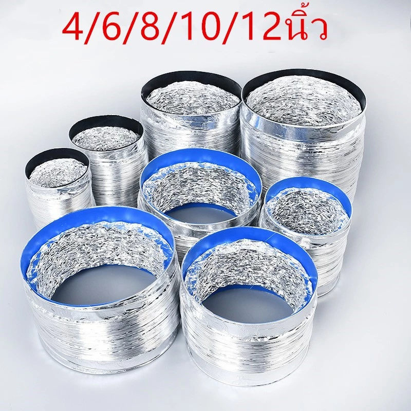 ท่อระบายอากาศยาว 2 เมตร ขนาด 4/6/8/10/12 นิ้ว ท่อฟอยล์อลูมิเนียม ท่ออลูมิเนียม ท่อยืดหยุ่น ท่ออากาศร้อน ท่ออ่อนเปลือย