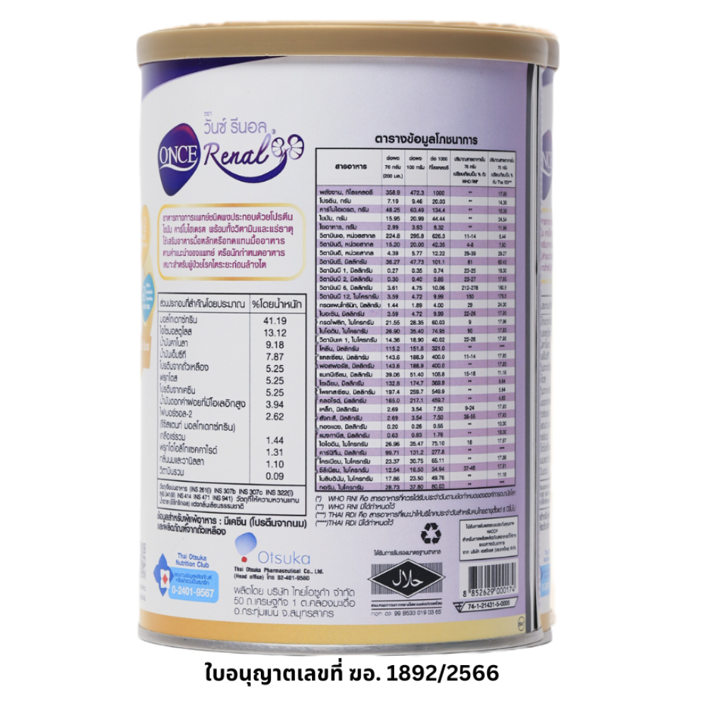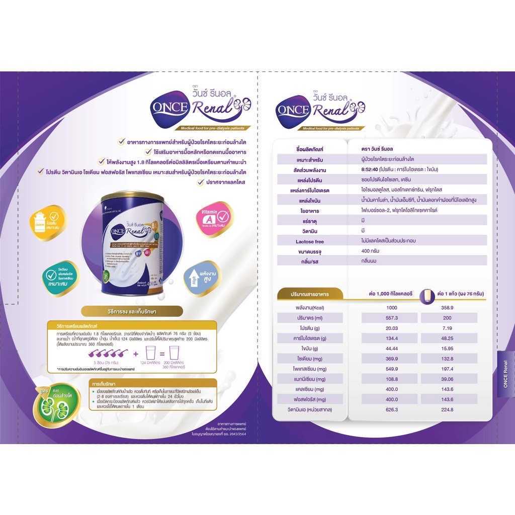 ONCE Renal วันซ์ รีนอล อาหารทางการแพทย์สําหรับผู้ป่วยโรคไตระยะก่อนล้างไต ขนาด 400 g.[11617]