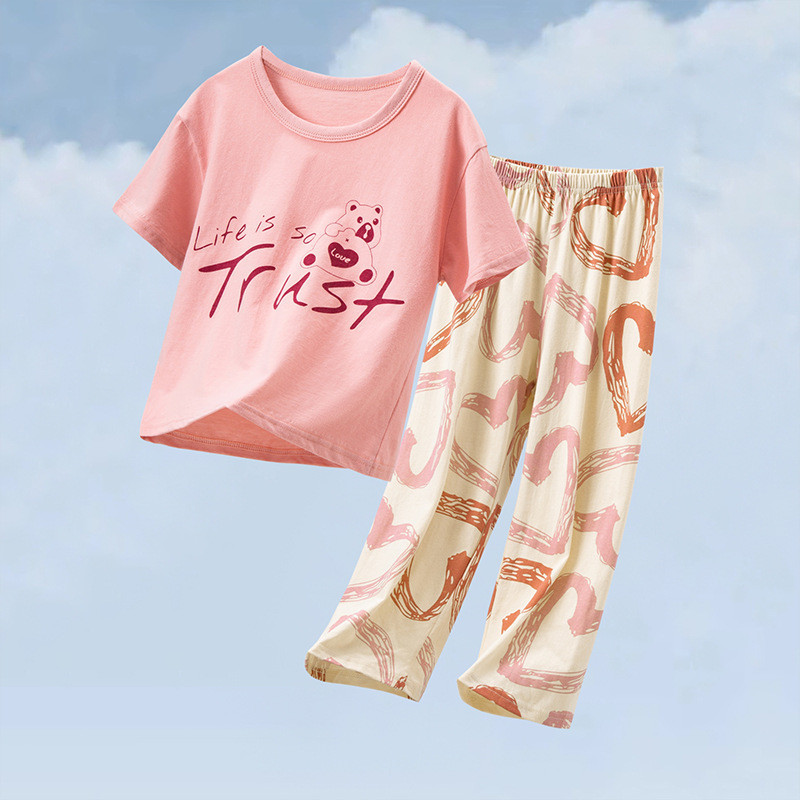 【YAOEENH】พร้อมส่ง ชุดนอน เสื้อแขนสั้น กางเกงขายาว ลายการ์ตูน สองชิ้น ขนาดใหญ่ 100-180 ซม. แฟชั่นฤดูร้อน สําหรับแม่ และลูก