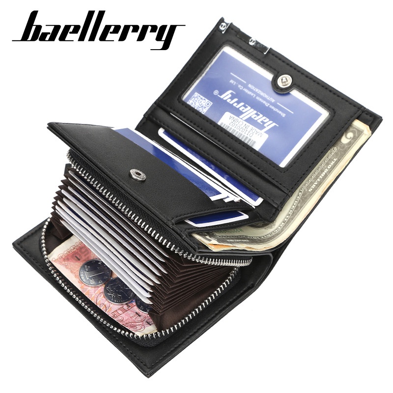 กระเป๋าสตางค์มีซิปสีทึบ Mens - ที่ใส่บัตรออร์แกนแฟชั่นพร้อมความจุขนาดใหญ่