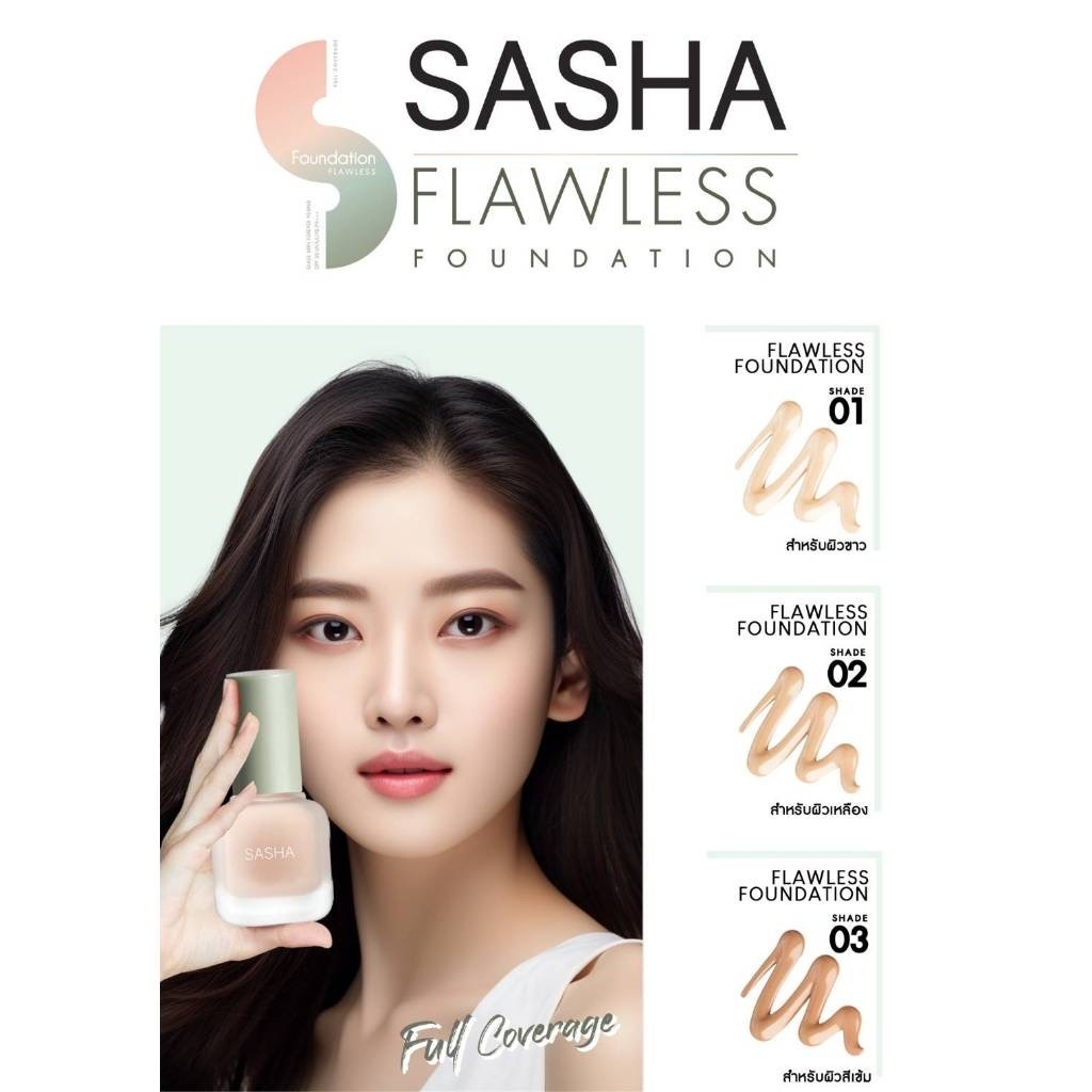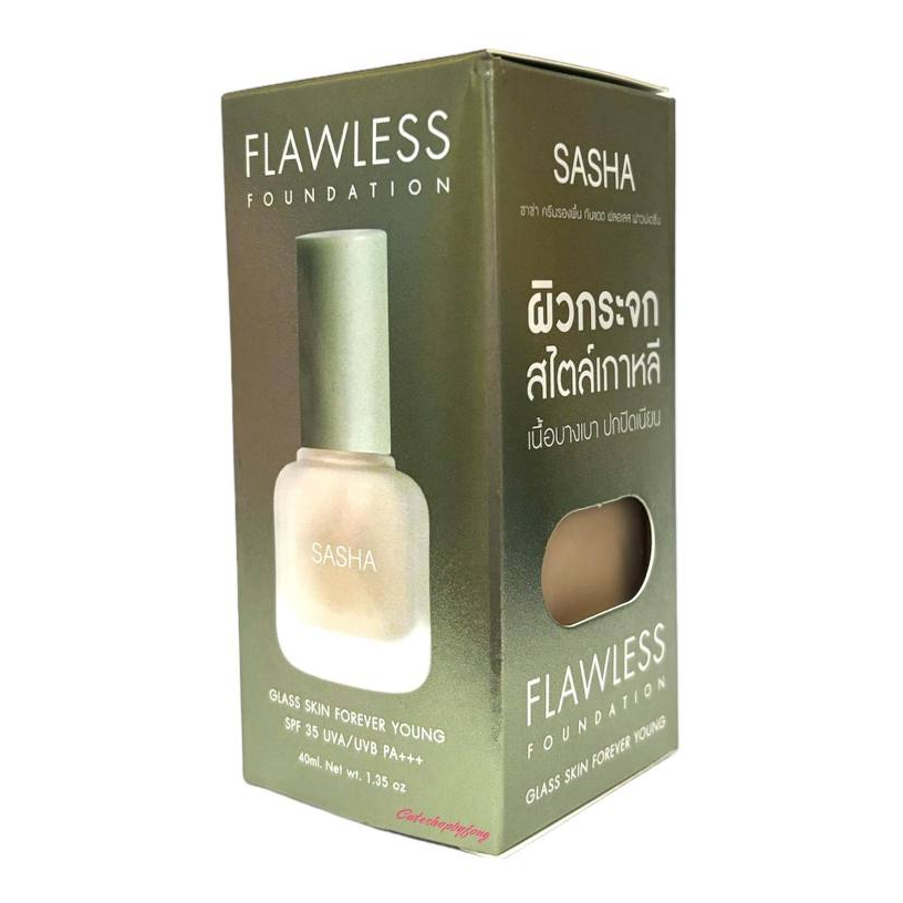SASHA FLAWLESS FOUNDATION ซาช่า ฟลอเลส ฟาวน์เดชั่น (กล่องเขียว) ครีมรองพื้นปกปิดกันน้ำ ผิวกระจก SPF35 PA+++