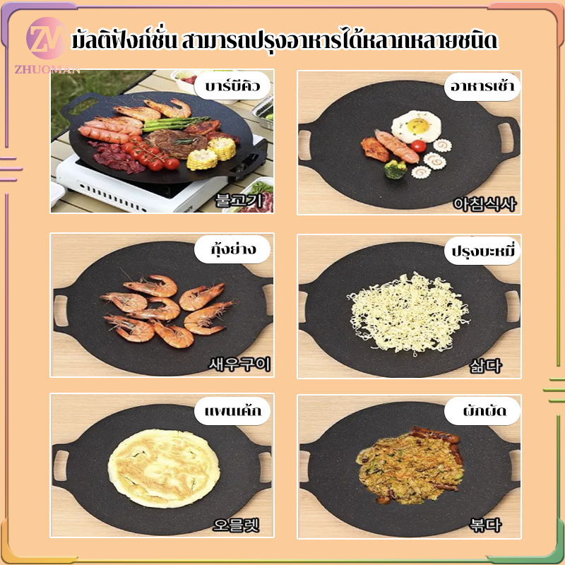 ถาดอบมัลติฟังก์ชั่น กระทะเคลือบหินอ่อน เตาย่าง กระทะปิ้งย่างสไตล์เกาหลี BBQเคลือบกันติด ร้อนเร็ว อาหารสุกไวทั่วถึงกัน