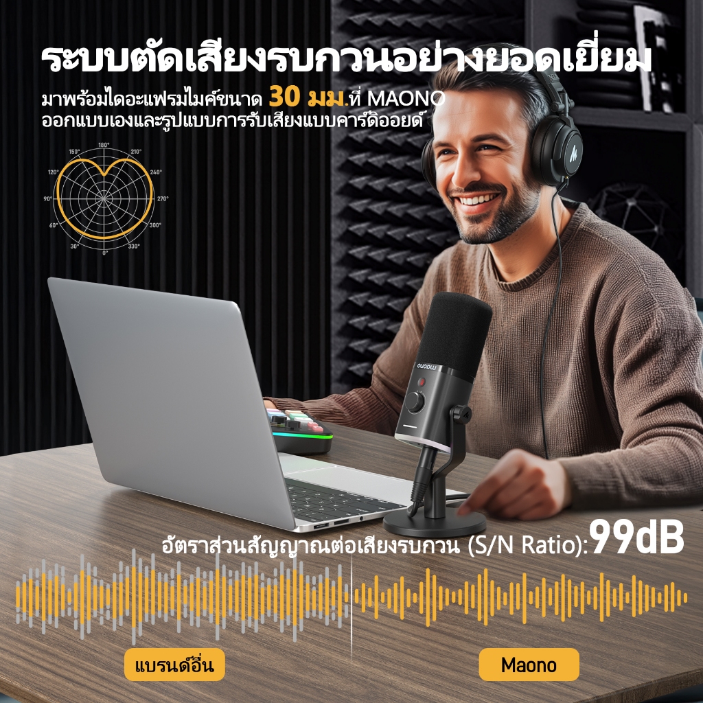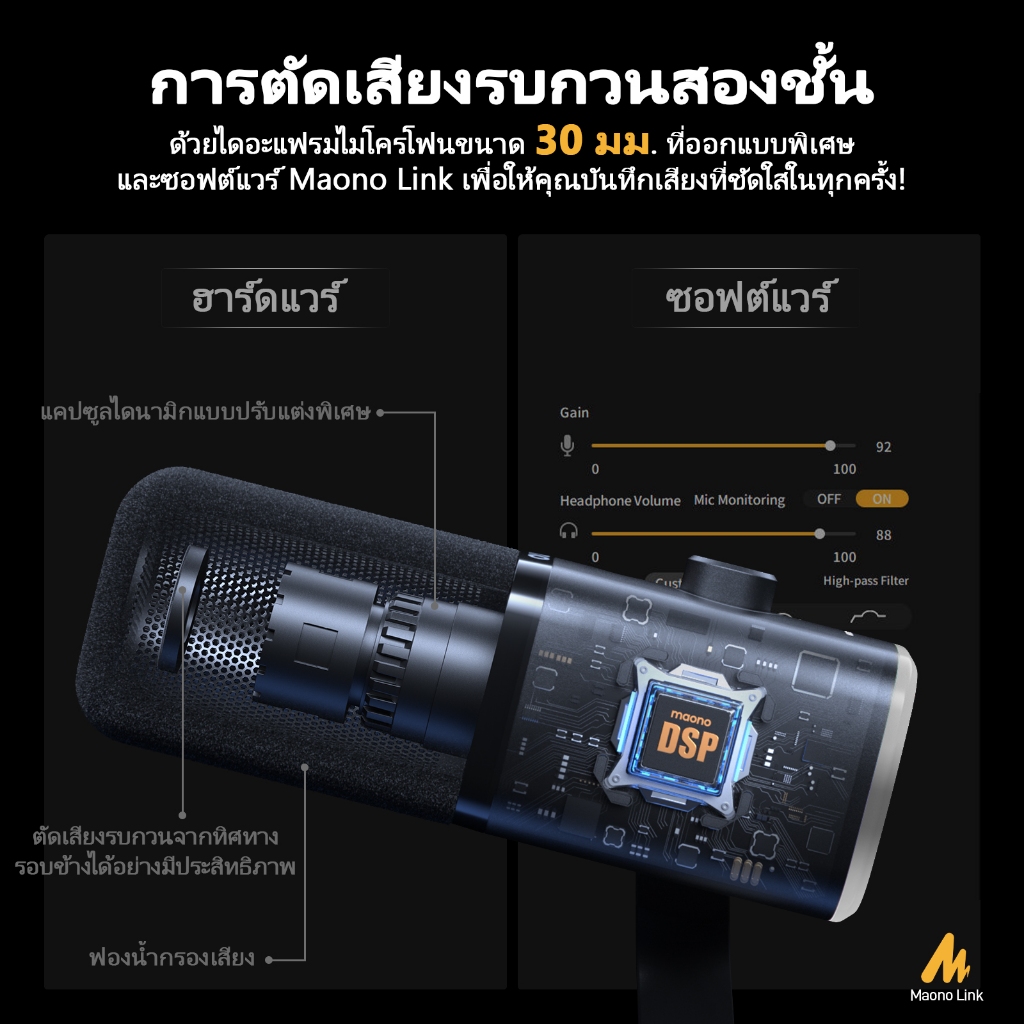 Maono PD100X RGB ไมโครโฟนสําหรับเล่นเกมแบบไดนามิก USB/XLR ชุดไมโครโฟนโหมดคู่พร้อมซอฟต์แวร์ ปิดเสียง การควบคุมระดับเสียงสําหรับพีซีโทรศัพท์ สตรีมมิ่ง เล่นเกม