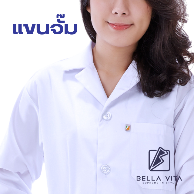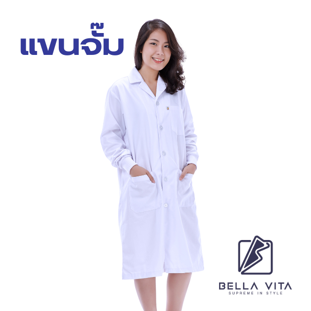 Bella Vita เสื้อกาวน์สีขาวปกสูท ตัวยาวแขนยาว มีทั้งแขนจั๊มและแขนปล่อย ให้เลือก Professional white