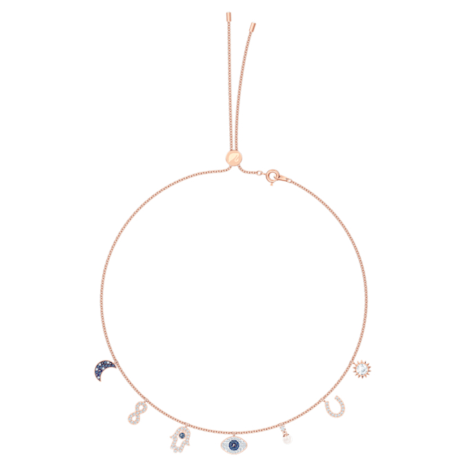 SWAROVSKI เครื่องประดับสร้อยข้อมือสวารอฟสกี้ (พร้อมกล่อง) ของขวัญหรูหราคุณภาพสูง สวารอฟสกี้ สร้อยคอสัญลักษณ์เพชรดวงจันทร์อินฟินิตี้มือปีศาจจี้ตาและเกือกม้า