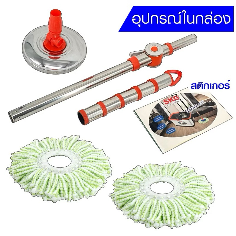SKG ถังปั่นไม้ถูพื้น รุ่น SK-6633 ถังสแตนเลส 8 ลิตร หมุนได้ 360 องศา แถมฟรี!! ผ้า 2 ชิ้น