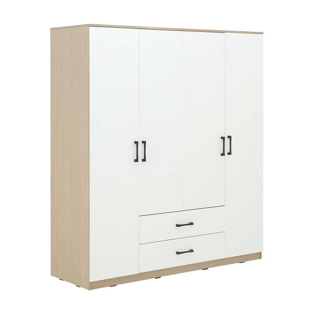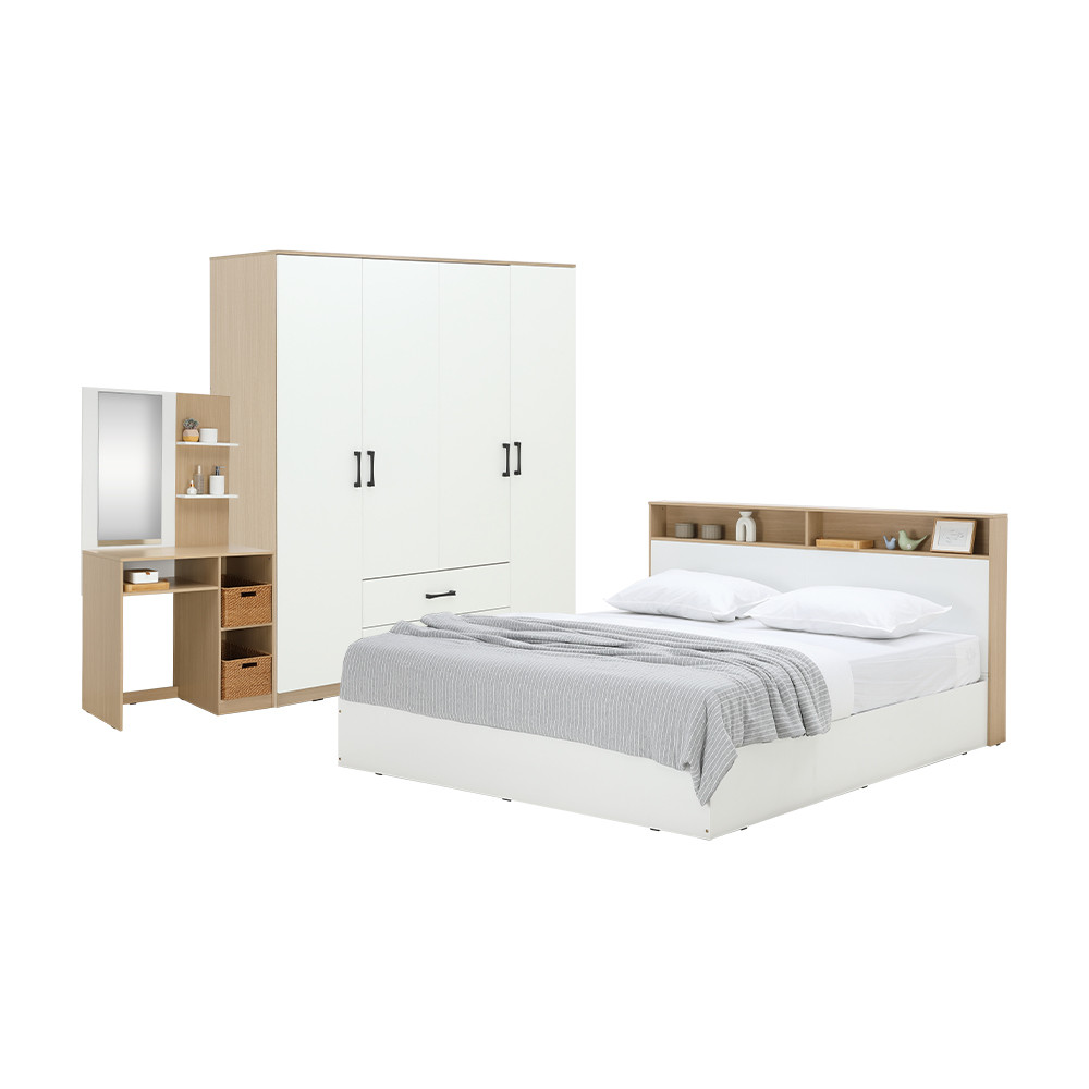 HomeHuk ชุดห้องนอน รุ่นคาร์เนชั่น+ฟินซ์ (เตียง, ตู้เสื้อผ้า 4 บาน, โต๊ะเครื่องแป้ง) - สีขาว/ธรรมชาติ