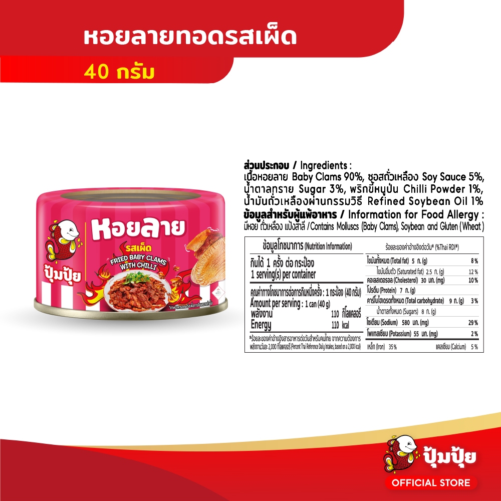 ปุ้มปุ้ย หอยลายทอดรสเผ็ด ขนาด 40 กรัม แพ็ค 10 กระป๋อง