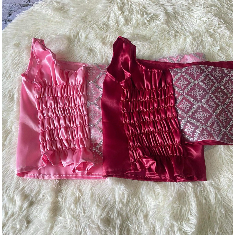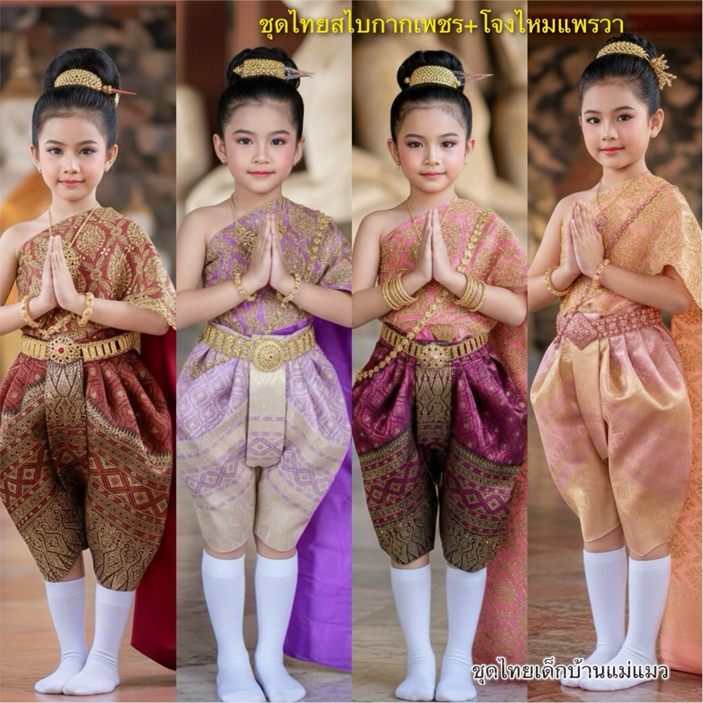(ทั้งชุด) ชุดไทยสไบกากเพชรสำเร็จสม๊อกหลัง+โจงกระเบนผ้าไหมแพรวา