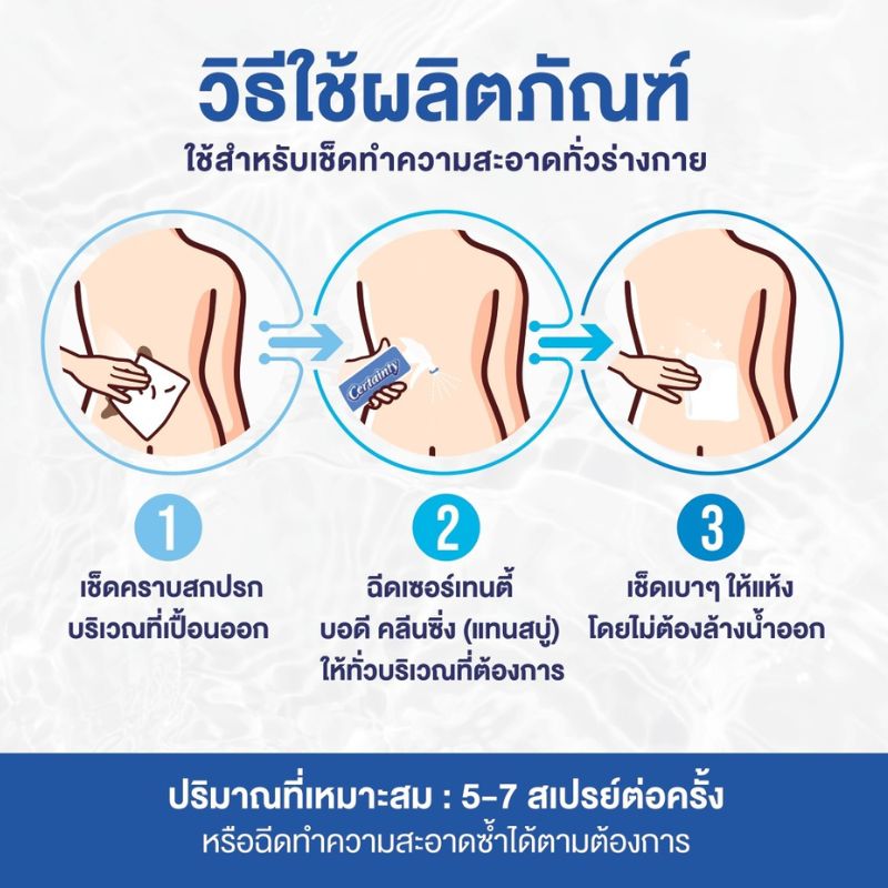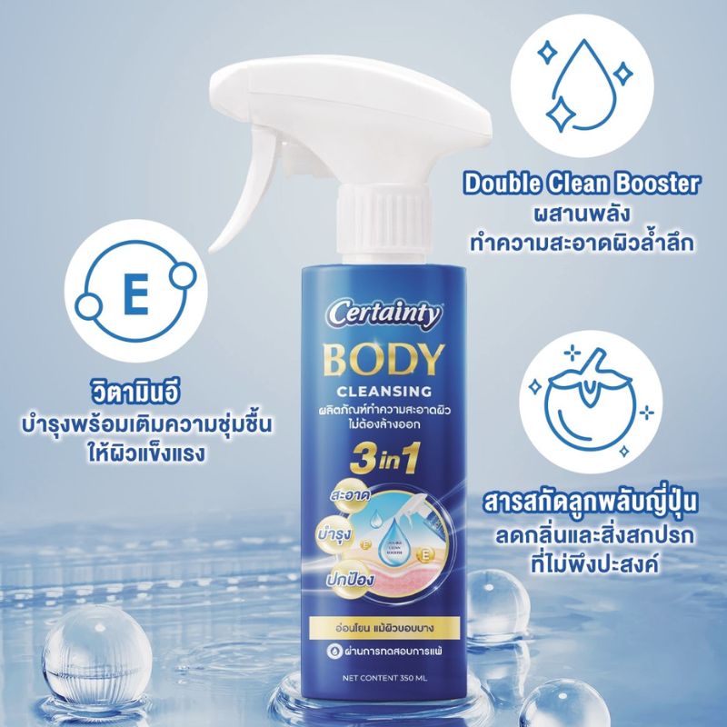 Certainty Body Cleansing เซอร์เทนตี้ บอดี้ คลีนซิ่ง สเปรย์ทำความสะอาดผิว แบบไม่ต้องล้างออก 350 ml.