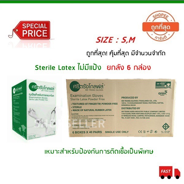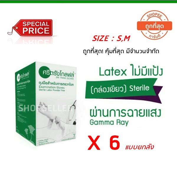 ถุงมือยาง Sterile ปลอดเชื้อ แบบไม่มีแป้ง กล่องสีเขียว ขายยกลังมี 6 กล่อง