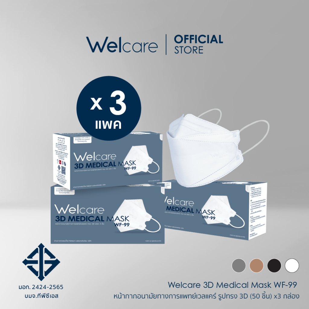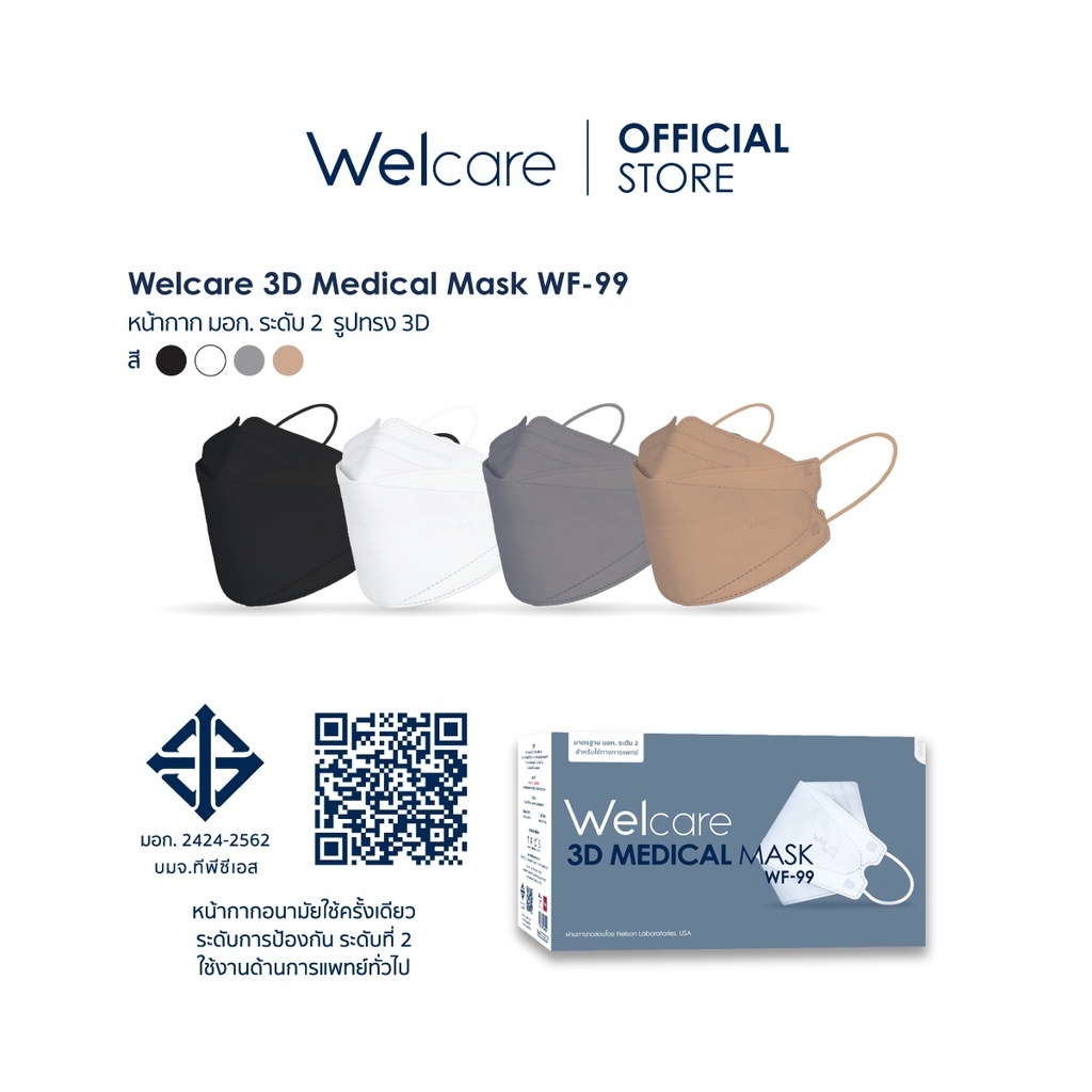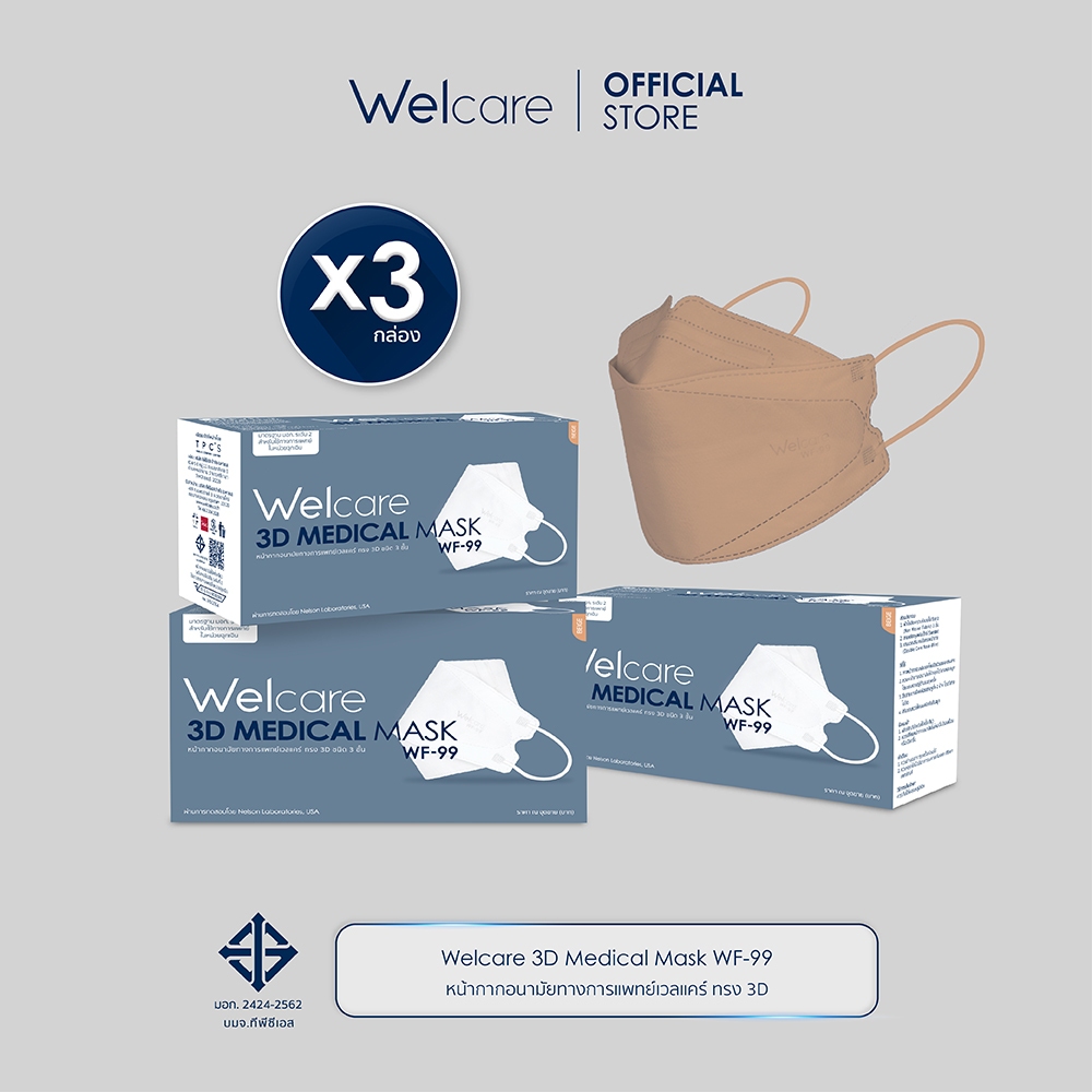 [Official] หน้ากากอนามัย Welcare 3D ทางการแพทย์ 3 ชั้น ระดับ 2 ช่วยป้องกันฝุ่น PM2.5 รุ่น WF-99 50 ชิ้น/กล่อง (3 กล่อง)