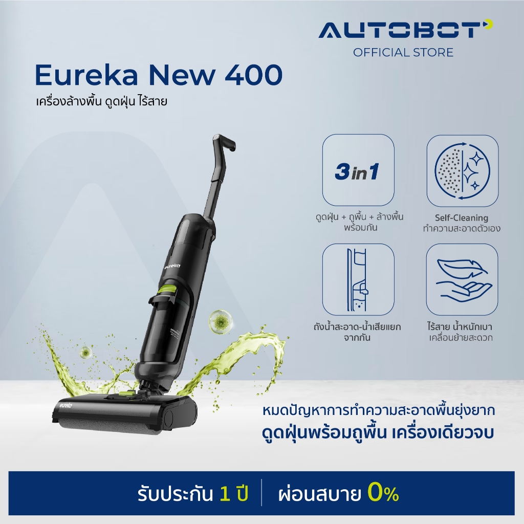 𝗔𝗨𝗧𝗢𝗕𝗢𝗧 x Eureka New 400 เครื่องล้างพื้น เครื่องดูดฝุ่น ไร้สาย ดูดน้ำ ขัดถูพื้น ใส่น้ำยาได้