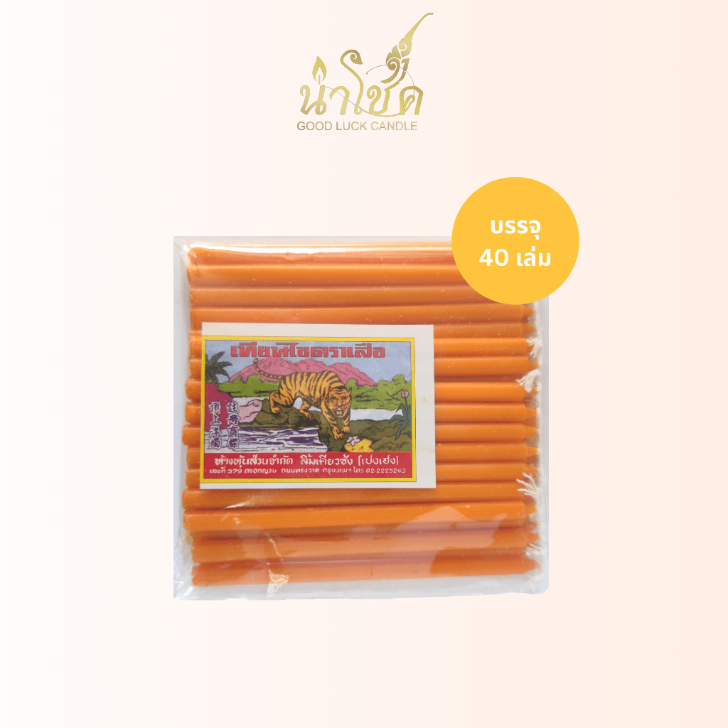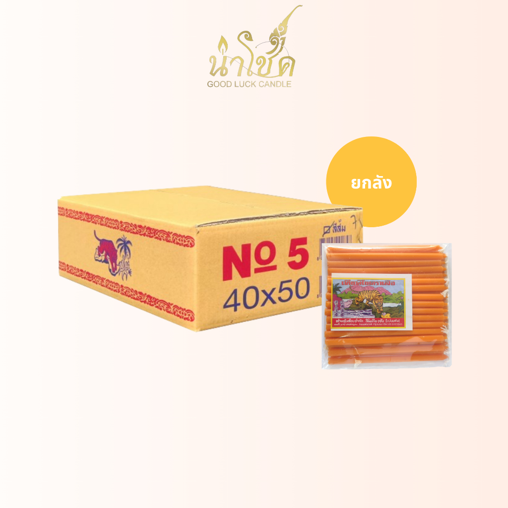 เทียนแท่ง ตราเสือ เบอร์5 ส้ม เสือ (40เล่ม) (50 แพ็ก)