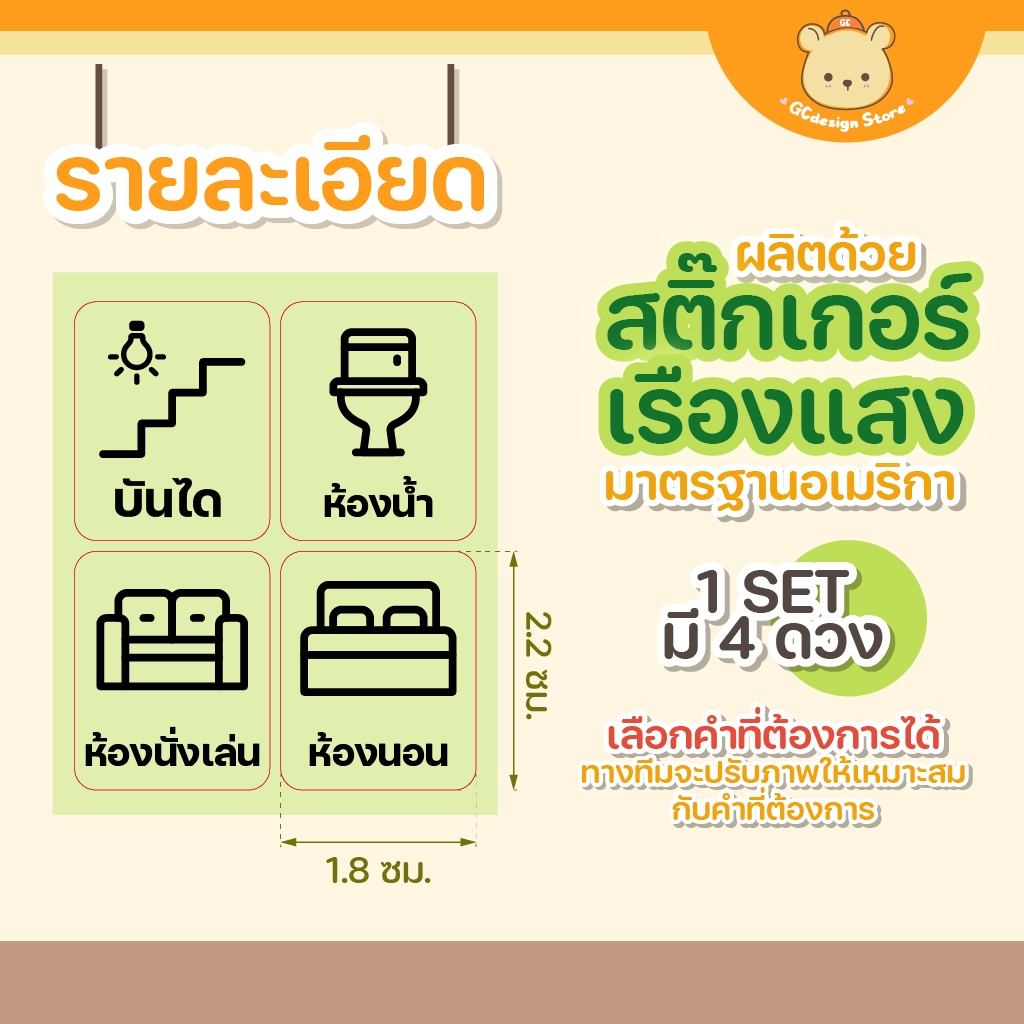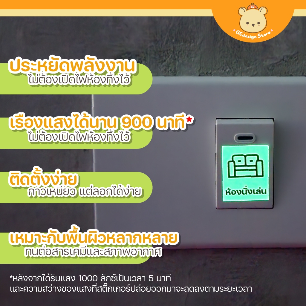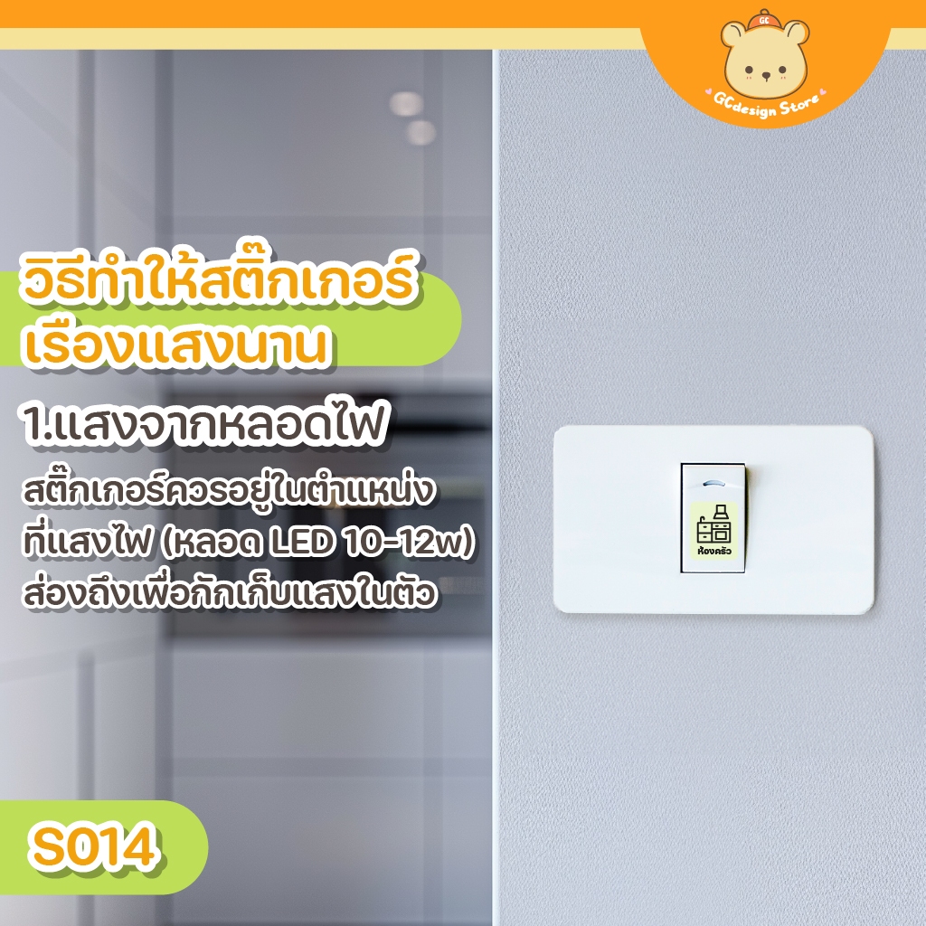 [สั่งผลิต] สติ๊กเกอร์ สวิตซ์ไฟ เรืองแสง กันน้ำ ติดทน สามารถแจ้งคำที่ต้องการได้ gcdesignStore S014