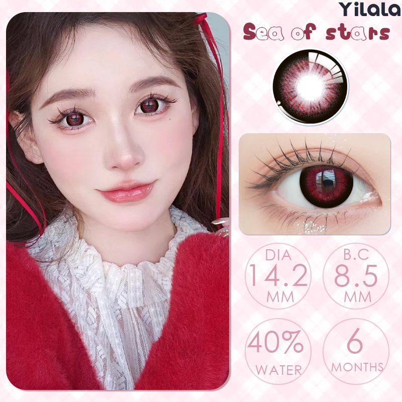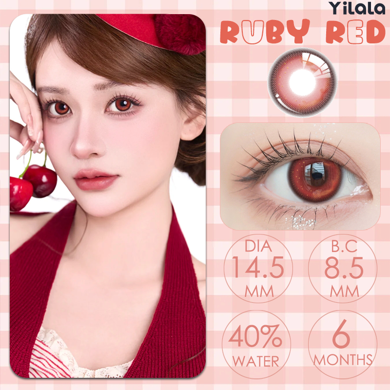 🔥สามารถใช้งานได้นาน 6 เดือน🔥คอนแทคเลนส์ Ruby red ขนาดกลาง Yilala ธรรมชาติ เนียน ตากลมขึ้น❤️