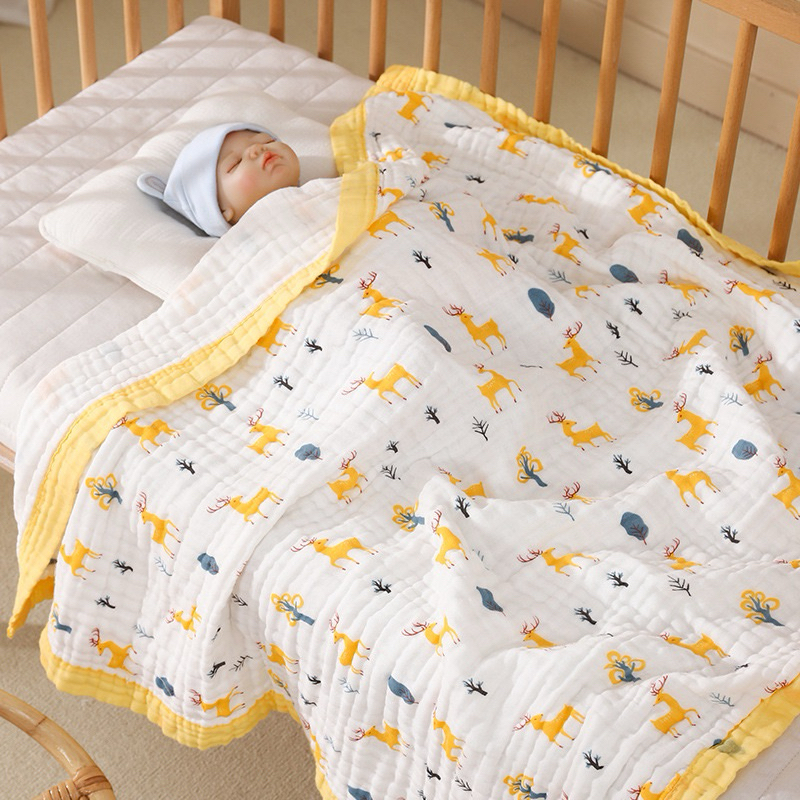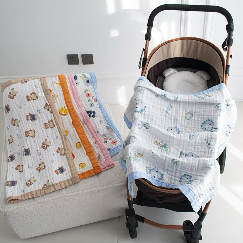 ผ้าเช็ดตัวเด็ก ผ้าฝ้ายแท้ทอ6ชั้น รุ่นกุ๊นขอบ ใช้งานอเนกประสงค์