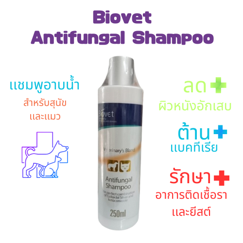 Biovet เเชมพูอาบน้ำสำหรับสุนัขและแมว สูตรกำจัดเชื้อรายีสต์ ดูเเลผิว 250ml Biovet Antifungal BV(0555)