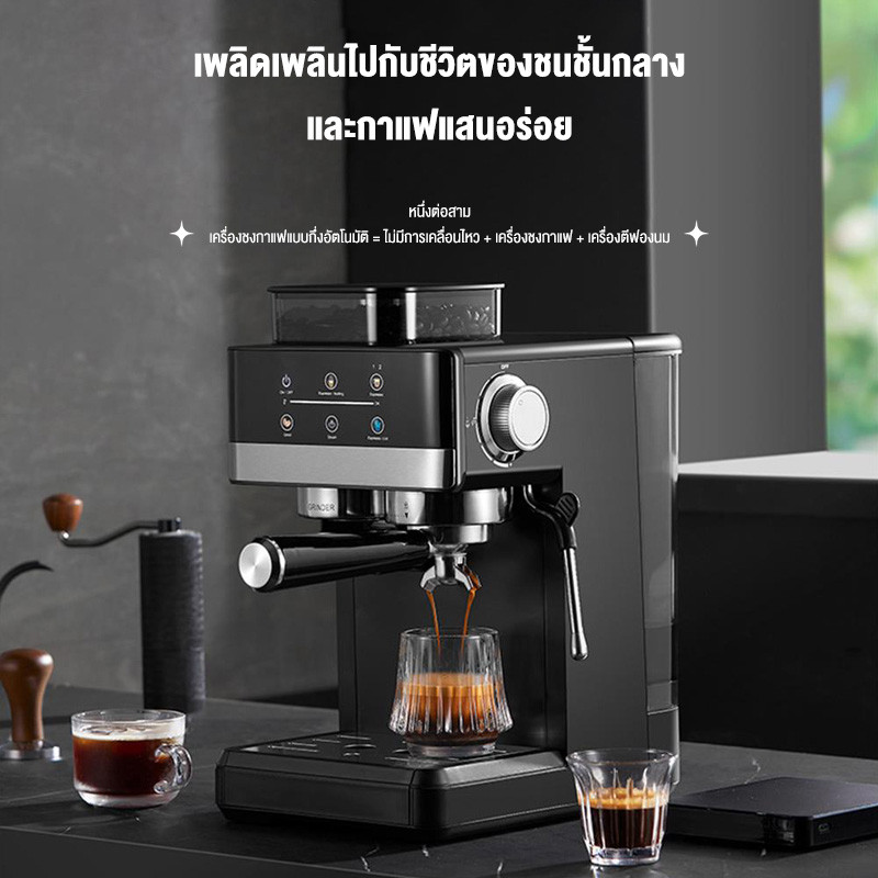 รับประกัน 1 ปี Ksrain เครื่องชงกาแฟ เครื่องชงกาแฟแบบบดในเครื่องเดียว 20bar 1800ML เครื่องชงกาแฟสด เครื่องชงกาแฟอัตโนมัติ