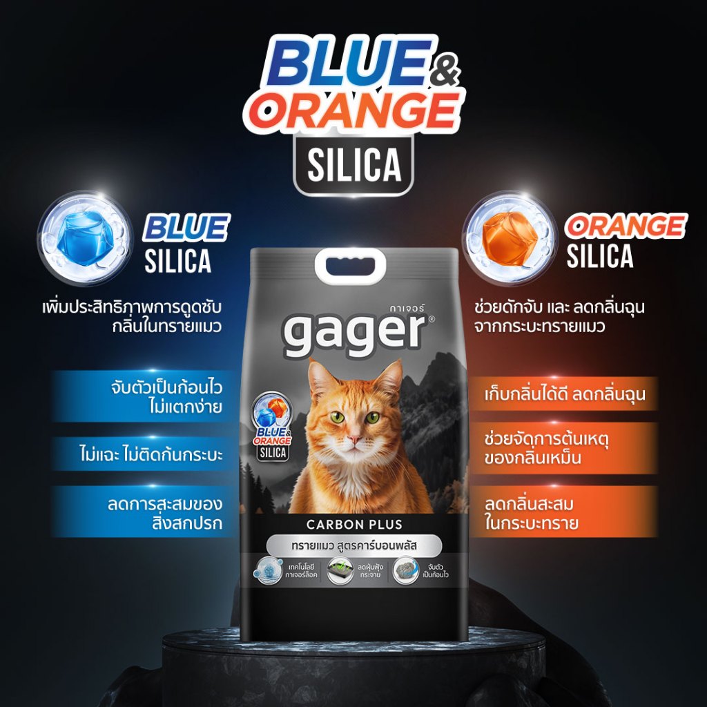 Gager ทรายแมวภูเขาไฟ สูตรคาร์บอนพลัส ทรายแมวประหยัด เก็บกลิ่นดี ทรายแมว ถุงดำ 8กิโล