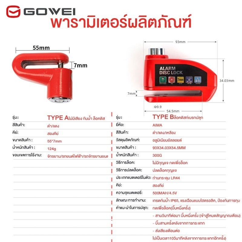 GOWEI กุญแจล็อคดิส 110db ล็อคดิสเบรค แบบมีเสียง ล็อคจานเบรค ล็อคกันขโมย กุญแจล็อคดิสมีเสียงที่ล็อกรถมอไซมอเตอร์ไซด์Honda
