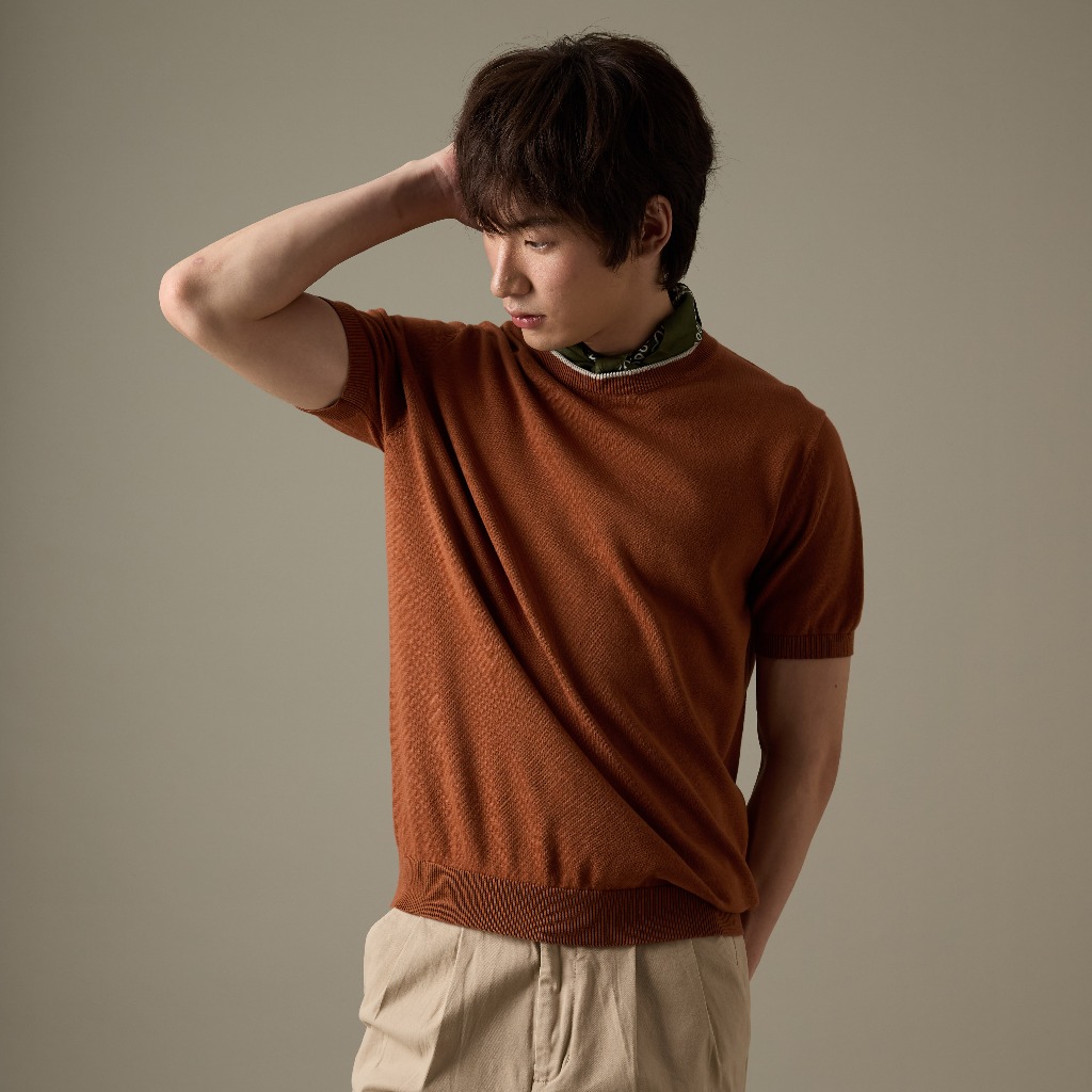 TWENTYSECOND เสื้อยืดแขนสั้นผ้า Knit รุ่น Carson Knit Cotton Tee - ส้ม / Brick