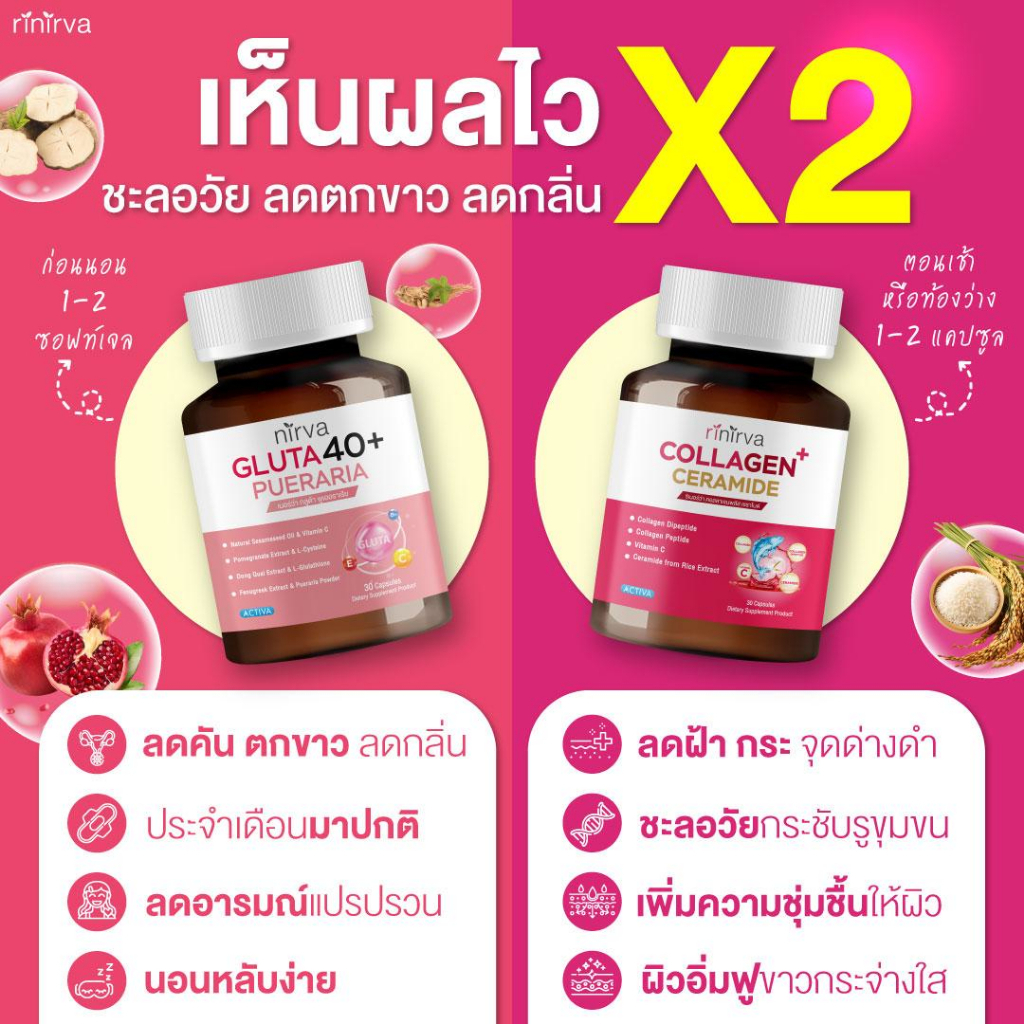 [SET] Rinirva ริเนอร์ว่าเซตคู่ผิวใส ภายในกระชับปรับสมดุลฮอร์โมน : Gluta1+Collagen1