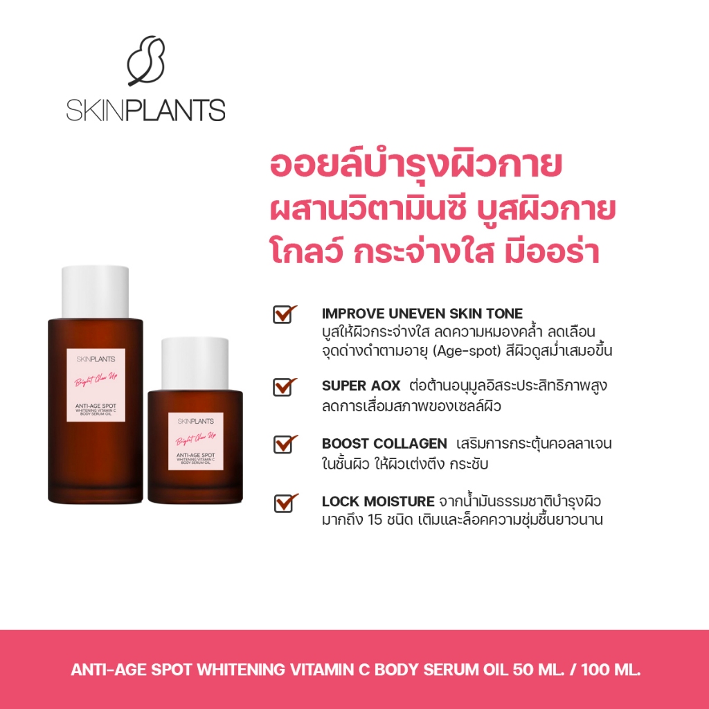 SKINPLANTS Anti-Age Spot Whitening Vitamin C Body Serum Oil 50/100 ml. บอดี้ออยล์ ผิวโกลว์ ผิวใส