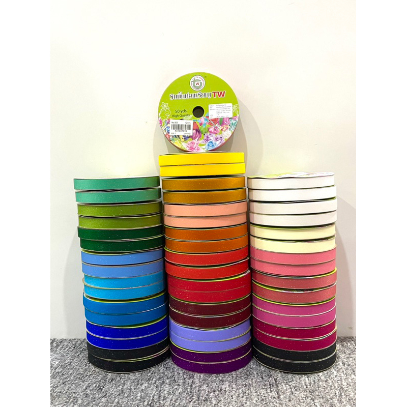 ริบบิ้นกากเพชรใส ตรา TW ม้วนน้อย ยาว 50 หลา เบอร์ 2 ขนาด 12 มิล ราคาต่อ 1 ม้วน