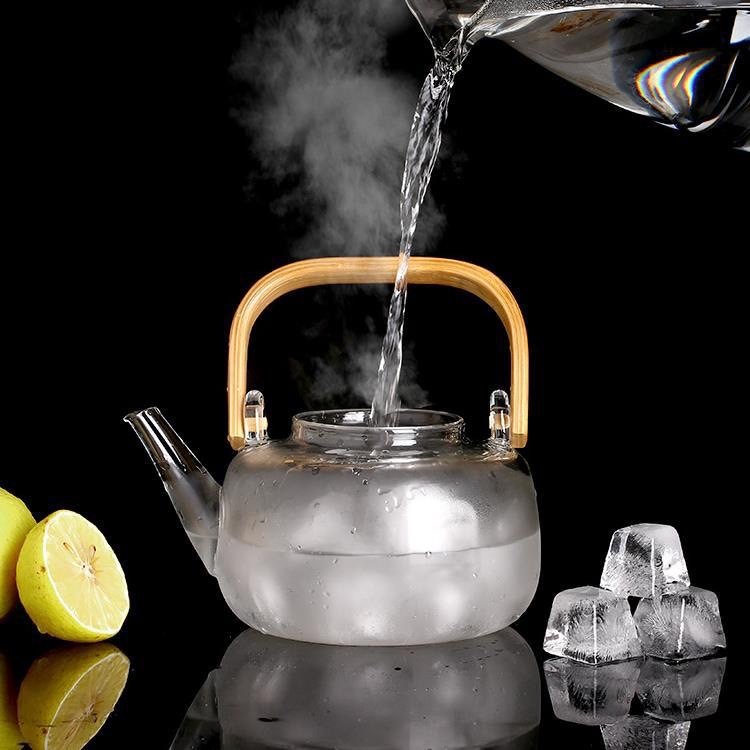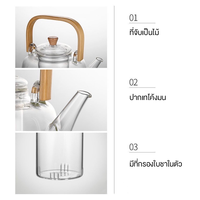 กาต้มน้ำ 1000ml พร้อมที่กรอง อุปกรณ์ชงชา ทนความร้อน หูจับไม้ เหยือกต้มน้ำชา กาน้ำชา