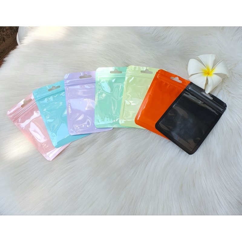 ซองซิบสีพาสเทล ถุงซิบ สีสดใส หลากสี พร้อมส่ง หน้าใส หลังสี ขนาด7.5x10 cm